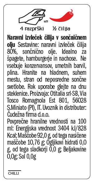 Sestavine: Izvleček čilija 80%, sončnično olje.